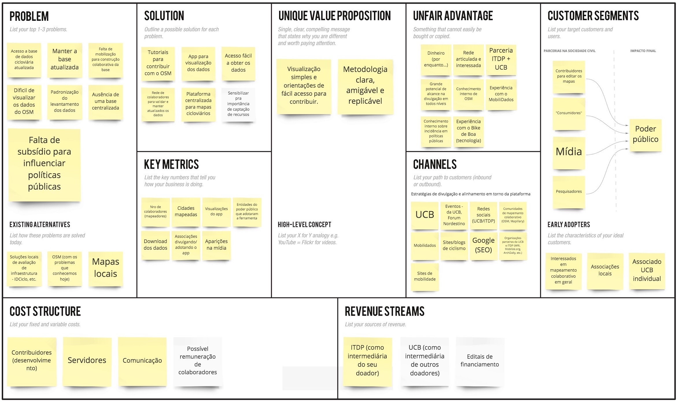 The Lean Canvas was an useful tool to get alignment on the team of the main aspects of the product.