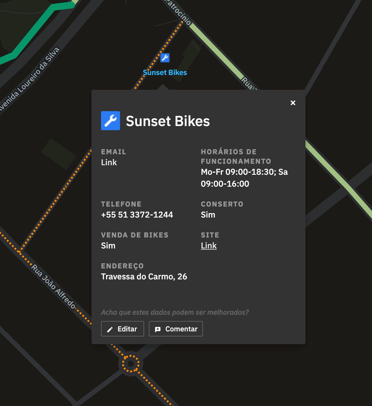 Tooltips for points of interest have more details, which were curated from the several metadata present in the OSM nodes. We made a big effort of understanding which were more important for the common user, as well as translating the technical names.