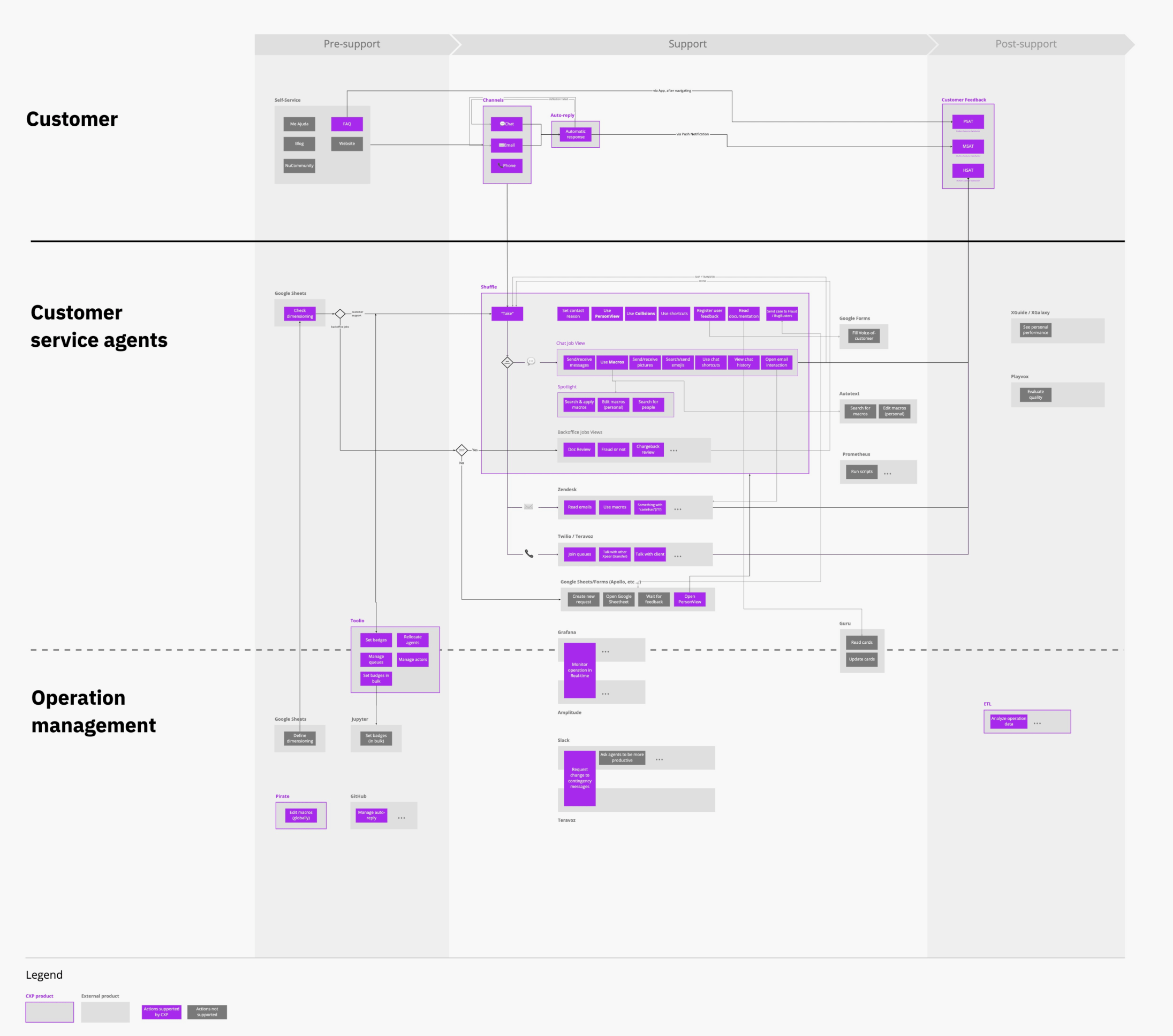 The Customer Excellent Platform (CXP) was the team responsible for handling high volumes of customer contact and maintain control over the process. We monitor operation metrics related to efficiency (e.g. customer waiting time) and quality (e.g. user satisfaction), and serves as a platform team for Developers, Designers, Product Managers, and Agents. By having a small team managing the platform, it can scale and grow, allowing users to extend it to suit their own product and feature needs. Ultimately, the main stakeholder impacted by this work is the customer.